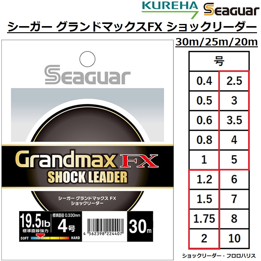 商品名 : シーガー グランドマックスFX ショックリーダー 30m 0.4, 0.5, 0.6, 0.8, 1号 SEAGUAR GRANDMAXFX SHOCK LEADER