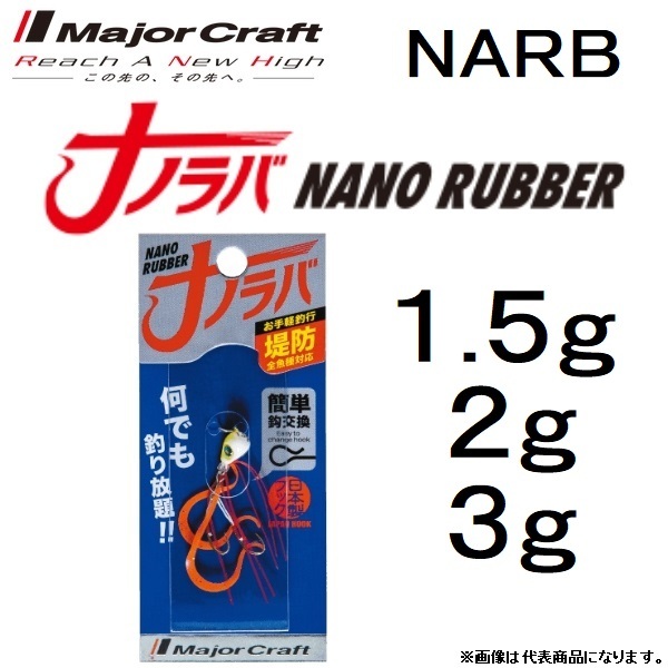 MajorCraft / メジャークラフト ナノラバ 1.5, 2, 3g 堤防全魚種対応 日本製フック MADE IN JAPAN NANO RUBBER (メール便対応)