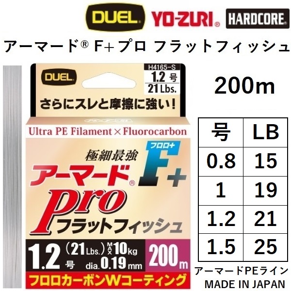 DUEL デュエル アーマードF+ Pro フラットフィッシュ 200m 0.8,1,1.2,1.5号 15,19,21,25Lbs アーマードPEライン 底物・根魚 国産・日本製