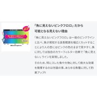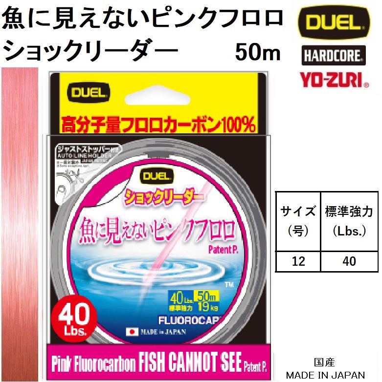 「魚に見えないピンクフロロ」 は一般のピンクラインと比べ、魚が感知する波長範囲を幅広くカットすることにより人の目にはピンクの色のままで見やすく、魚に対しては独自のカラーフィルター効果で 「魚に見えない」 ラインを実現しました。