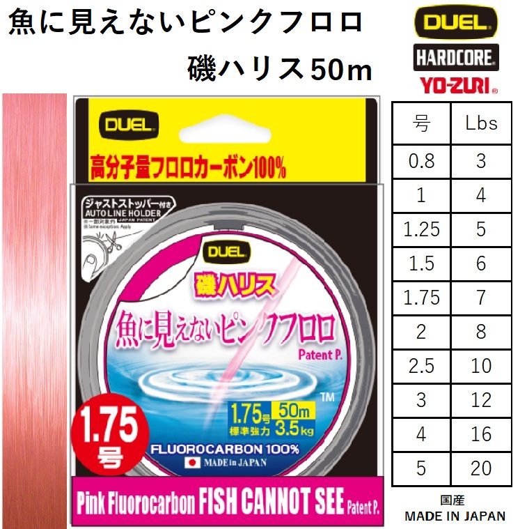 「魚に見えないピンクフロロ」 は一般のピンクラインと比べ、魚が感知する波長範囲を幅広くカットすることにより人の目にはピンクの色のままで見やすく、魚に対しては独自のカラーフィルター効果で 「魚に見えない」 ラインを実現しました。