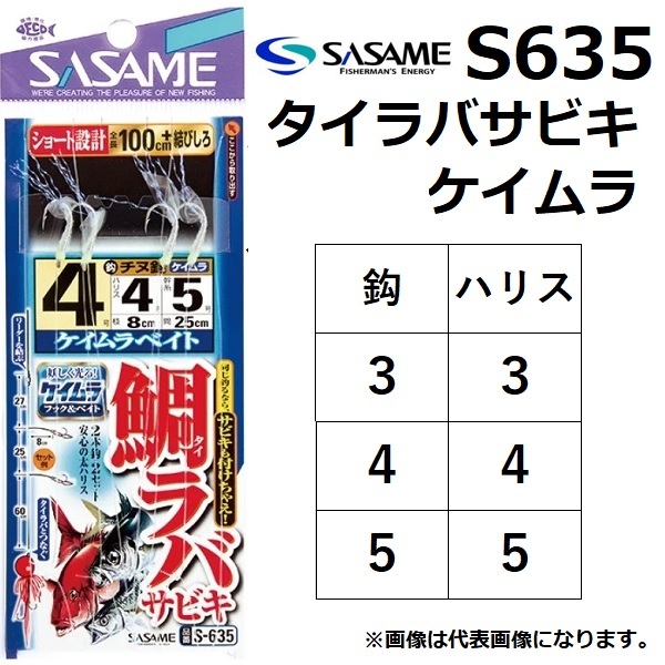 ささめ針/SASAME タイラバサビキ・ケイムラスキン S-635 3-3, 4-4, 5-5号 全長1.12m 2本鈎 チヌ鈎 ケイムラ 鯛ラバ 青物 根魚 ヒラメ 船用サビキ(メール便対応)