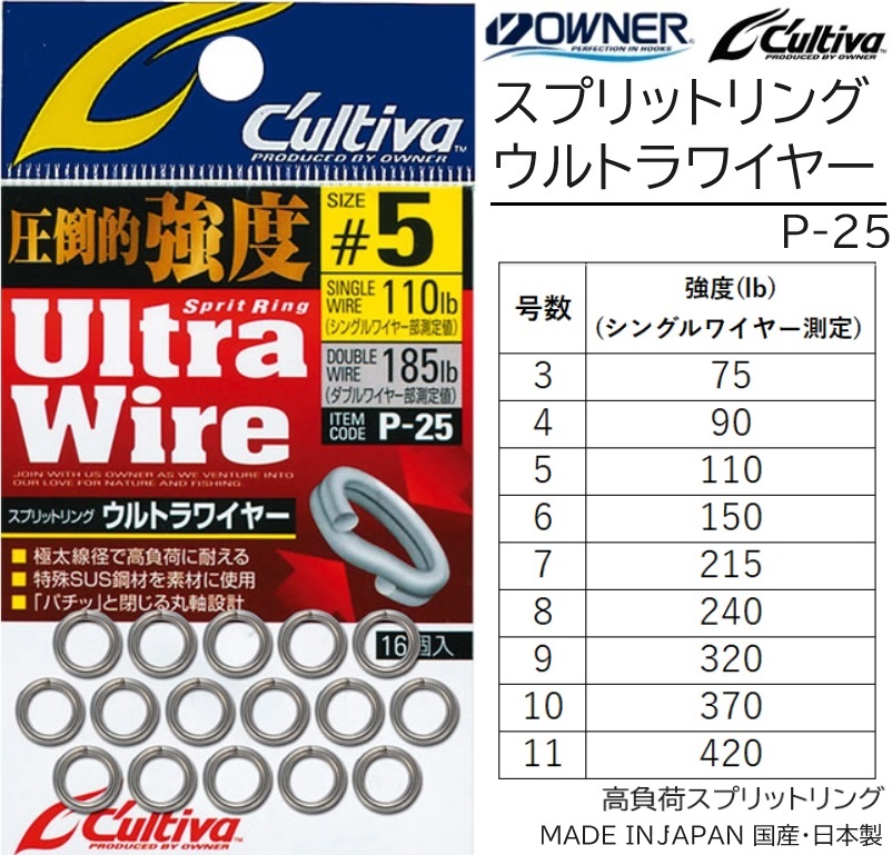 オーナー/カルティバ スプリットリングウルトラワイヤー P-25 No.72825 フィッシングギア・小物 国産・日本製 MADE IN JAPAN OWNER Cultiva P25 (メール便対応)