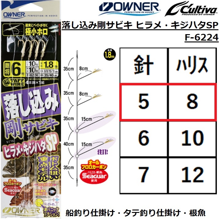 オーナー 落し込み剛サビキ ヒラメ・キジハタSP F-6224 5-8号 剛将4本針 青物・底物用落し込み船サビキ(メール便対応)