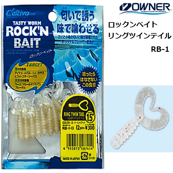 オーナー/カルティバ リングツインテイル 1.5インチ 1.5inc RB-1 No.82905 ROCK’N BAIT ロックンベイト サーフ 堤防 磯 WORM ワーム (メール便対応)