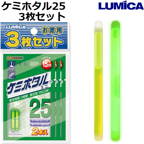 ルミカ/LUMICA ケミホタル25 3枚セット ミニ 2本入 テープ・チューブ付 イエロー 発光体 集魚ライト マーカーライト 簡易ライト Xstrader (メール便対応)