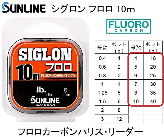 サンライン/SUNLINE シグロン フロロ 10m 4, 5, 6, 7, 8, 10号 16, 20, 25, 30, 35, 40lb.フロロカーボンハリス・リーダーSIGLON(メール便対応)