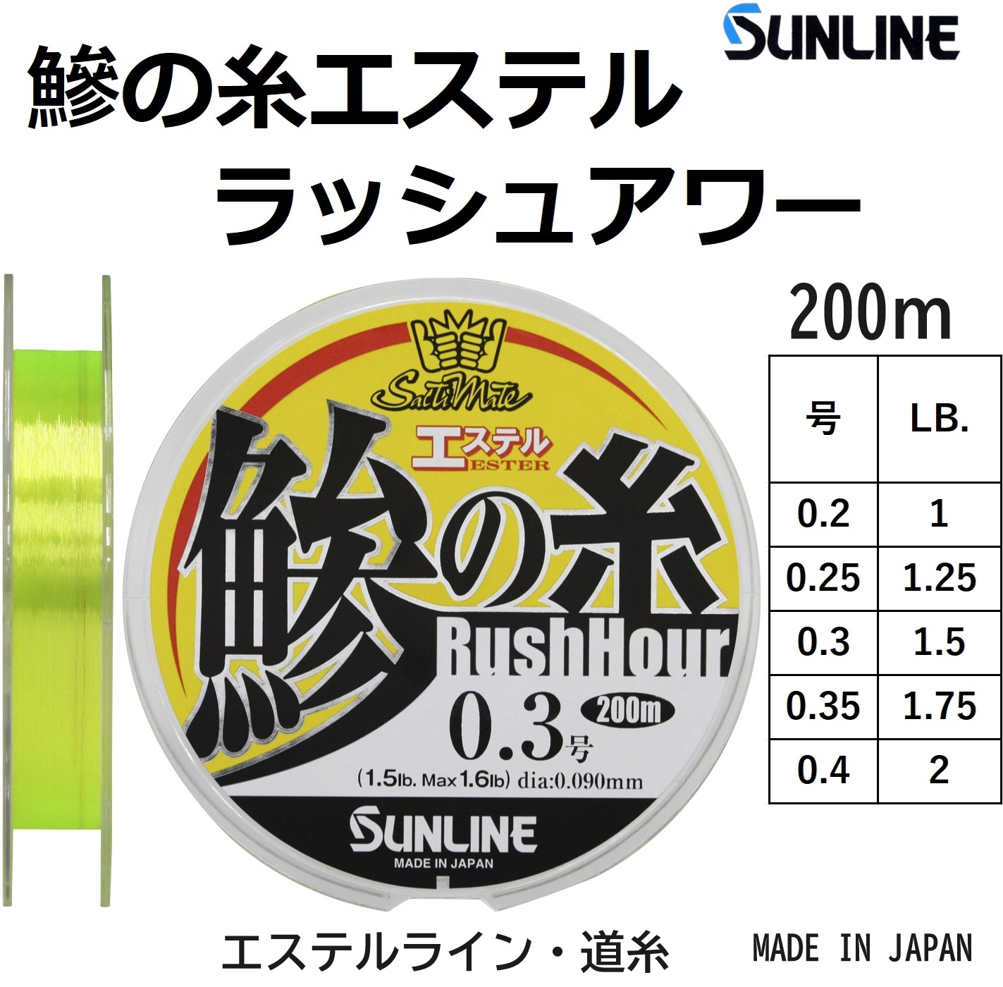 サンライン/SUNLINE ソルティメイト 鯵の糸エステルラッシュアワー 200m 0.2, 0.25, 0.3, 0.35,0.4号 ポリエステルライン 国産・日本製 RUSH HOUR