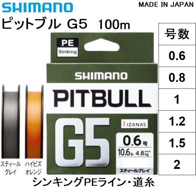 シマノ/SHIMANO ピットブルG5 100m 0.6, 0.8, 1, 1.2, 1.5, 2号 LD-M41U 5本組シンキングPEライン 国産・日本製 LDM41U PITBULLG5(メール便対応)