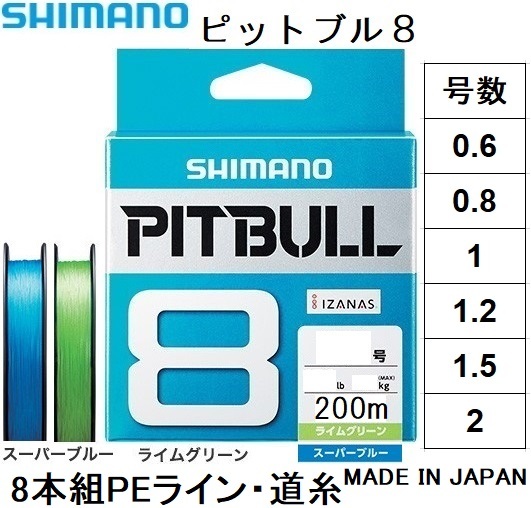 シマノ/SHIMANO ピットブル8 200m 0.6, 0.8, 1, 1.2, 1.5, 2号 PLM68R 8本組PEライン国産・日本製 PL-M68R PITBULL8(メール便対応)