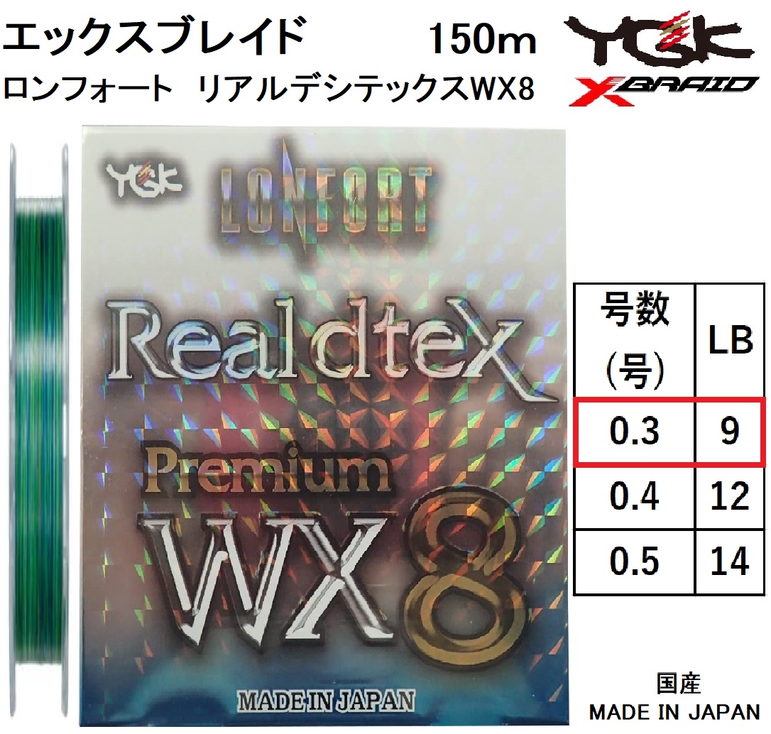 製品名 : ロンフォート リアルデシテックスプレミアム WX8 150m 0.3号 Lonfort Realdtex Premium ダブルアールエックス