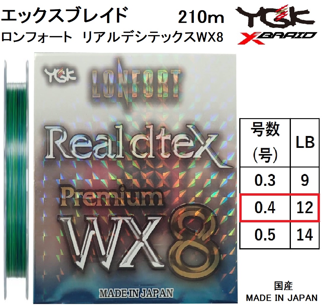 製品名 : ロンフォート リアルデシテックスプレミアム WX8 210m 0.4号 Lonfort Realdtex Premium ダブルアールエックス