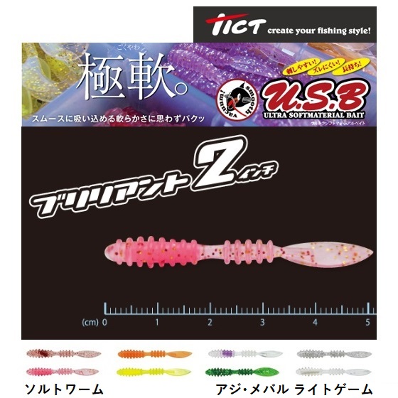 ティクト/TICT ブリリアント 2.0インチ ソフトルアー ワーム ライトゲーム アジ・メバル・イワシ・キビナゴ・イカナゴ・シラス アジング 2インチ