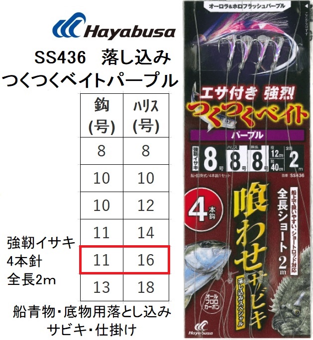 ハヤブサ/Hayabusa 落し込みスペシャル 喰わせサビキ つくつくベイトパープル SS436 強靭イサキ4本鈎 11-16号 青物・底物用船落とし込み仕掛け・サビキ