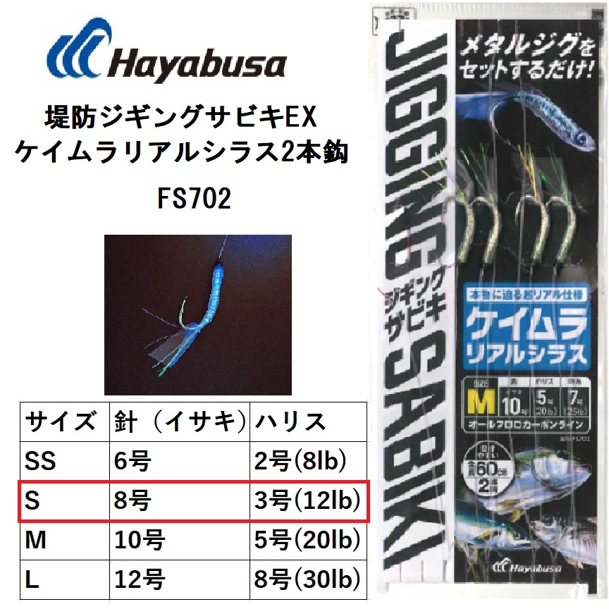 ハヤブサ/Hayabusa 堤防ジギングサビキEXケイムラリアルシラス2本鈎 FS702 Sサイズ 8-3号 イサキ2本針全長60cm 青物 根魚 フラットフィッシュ
