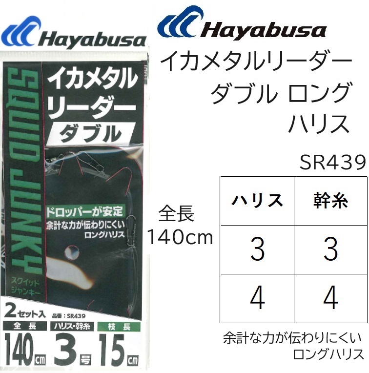 ハヤブサ/Hayabusa イカメタルリーダー ダブルロングハリス 2セット SR439 3-3, 4-4号 全長140cm イカメタル・鉛スッテ・オモリグ仕掛SR-439(メール便対応)