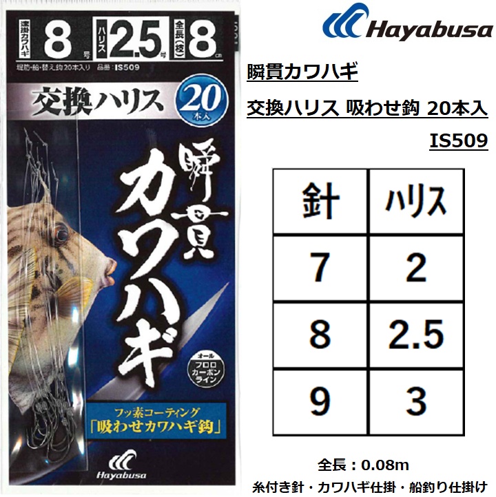 ハヤブサ/Hayabusa 瞬貫カワハギ 交換ハリス 吸わせ鈎 20本入 IS509 7-2.5,8-2.5,9-3号 全長0.06m 糸付き針 カワハギ仕掛 船釣り仕掛け