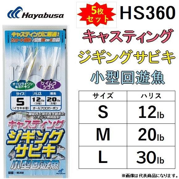 (5枚セット)ハヤブサ/Hayabusa ジギングサビキ キャスティングタイプ 小型回遊魚 HS360 全長65cm イサキ2本鈎 2セット S, M, L ライトジギング(メール便対応)