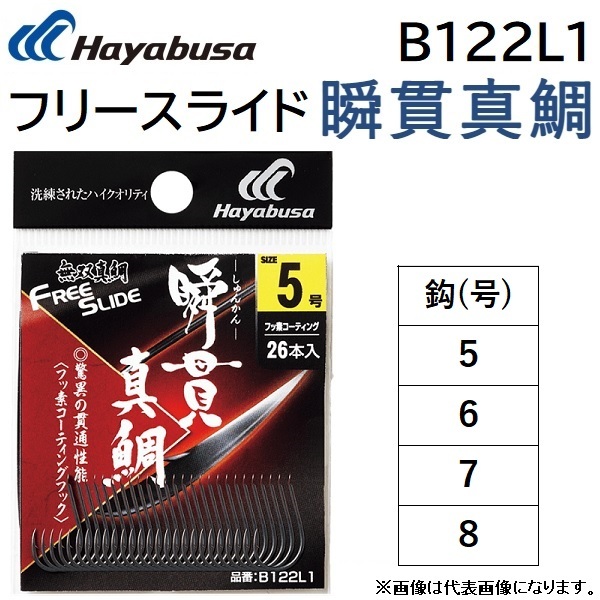 ハヤブサ/Hayabusa フリースライド瞬貫真鯛 B122L1 タイラバ 鯛ラバ フック バラ針 無双真鯛 FREE SLIDE(メール便対応)