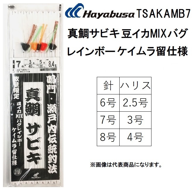 (数量限定)ハヤブサ/Hayabusa 鳴門・瀬戸内伝統釣法 真鯛サビキ 豆イカMIXバグレインボーケイムラ留仕様 6 , 7 , 8号 TSAKAMB7 真鯛用船サビキ(メール便対応)