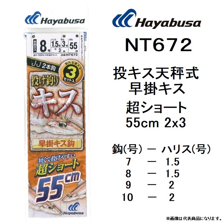 ハヤブサ/hayabusa 投キス天秤式 早掛キス 超ショート55cm 2x3 NT672 7-1.5、8-1.5、9-2、10-2号 (メール便対応)