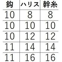 | 鈎(号) | ハリス(号) | 幹糸(号) | JAN |