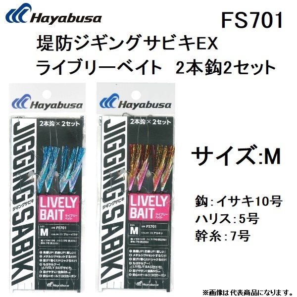 ハヤブサ/Hayabusa 堤防ジギングサビキEX ライブリーベイト 2本鈎2セット FS701 Mサイズ 10-5号 JIGGING SABIKI(メール便対応)