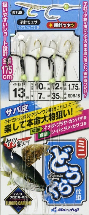 まるふじ ミニどうらく仕掛け SDR-18 11,12,13号 サバ皮 伊勢尼 マゴ針 胴突4本針 青物・底物用落し込み船サビキ(メール便対応)