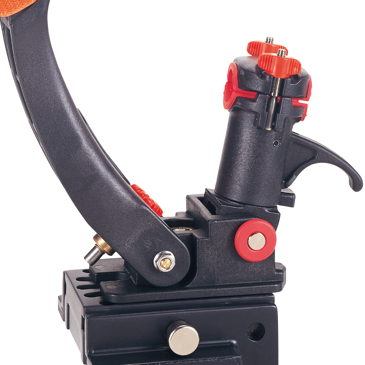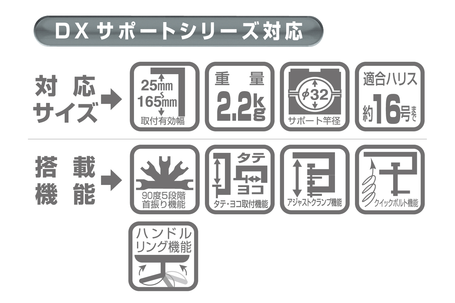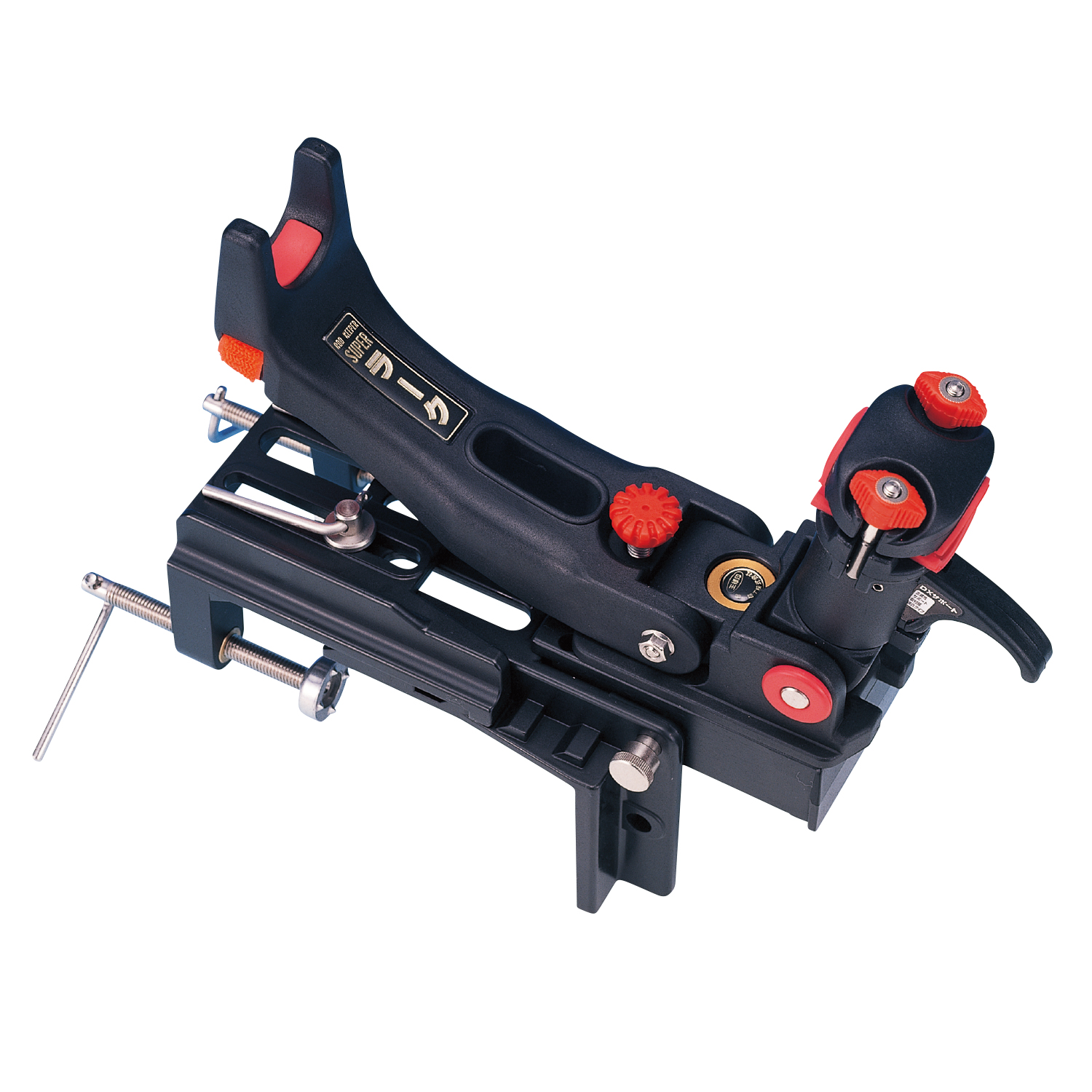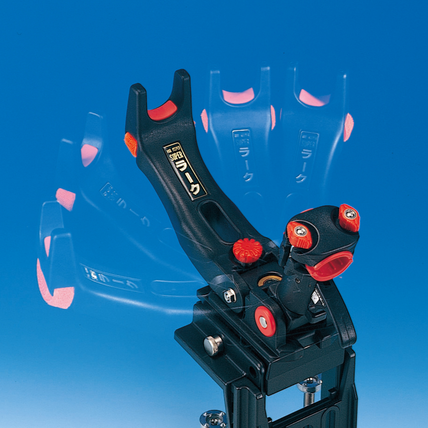竿の上下角度(-5°〜10°)と竿の首振り角度5段階の調節をネジ1本で可能にしました。
