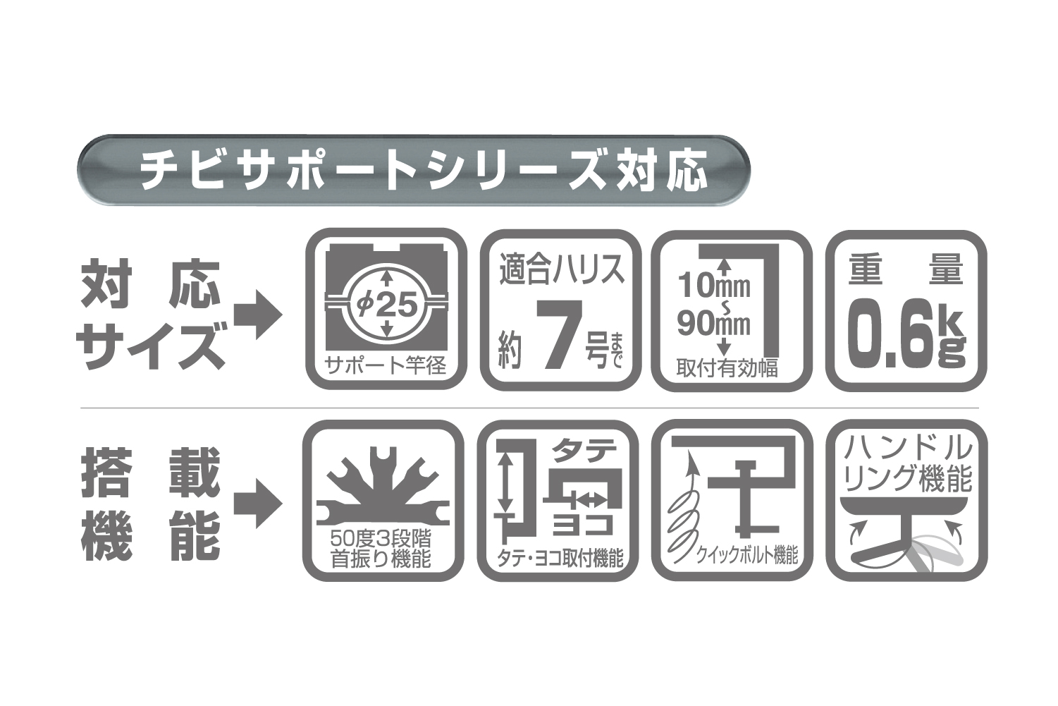 対象魚や釣り方に合わせて2種類の竿受部が、ネジで簡単に交換できます。