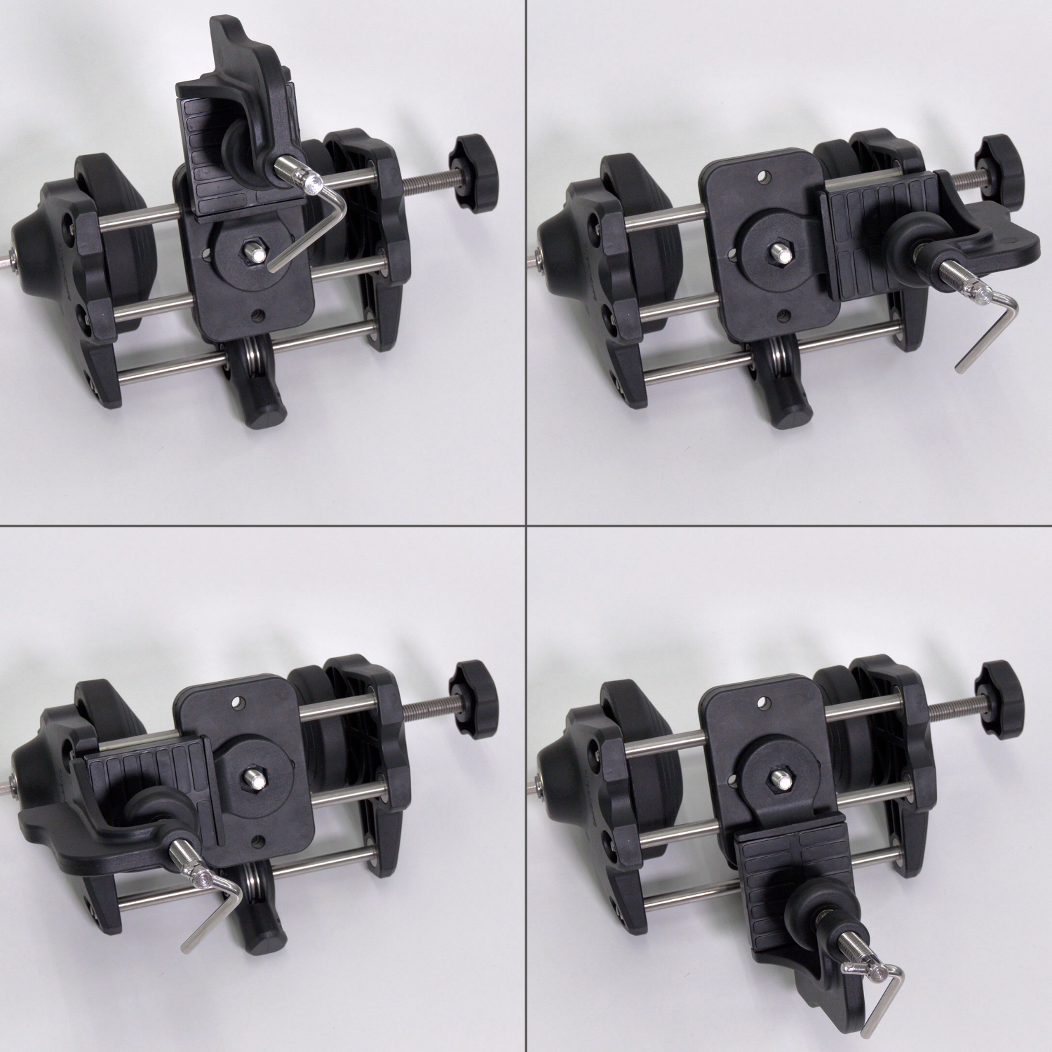 4方向変更可能なクランプでテーブルなどに簡単固定!