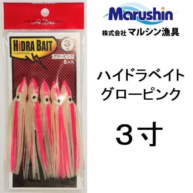 (当店限定カラー)マルシン/ドラゴン ハイドラベイト グローピンク 3寸 タコベイト 青物・太刀魚・タチウオ用 ピンクグロー バケ HiDRA BAIT Marushin/Dragon