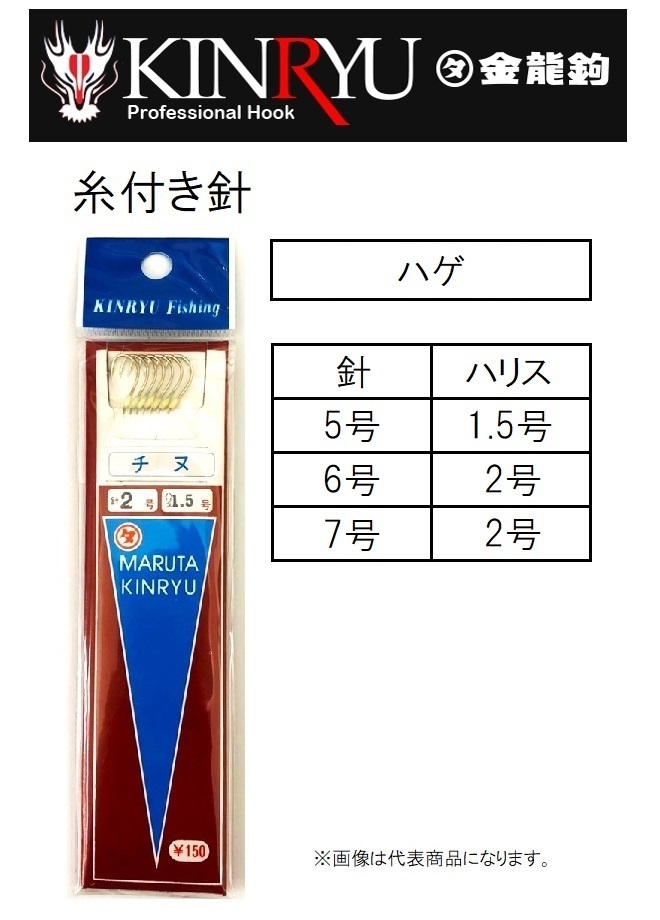 金龍鉤/ 糸付針 ハゲ針 5 , 6 , 7号 糸付き針 ハゲ 袖鉤 袖針 (メール便対応)