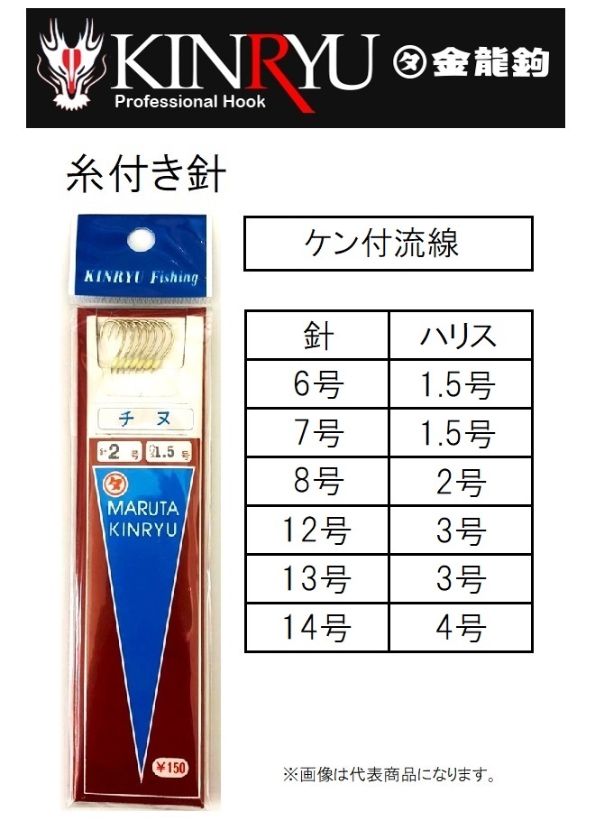 金龍鉤/ 糸付針 ケン付流線針 3 , 5 , 6 , 7 , 8号 糸付き針 ケン付流線 袖鉤 袖針 (メール便対応)