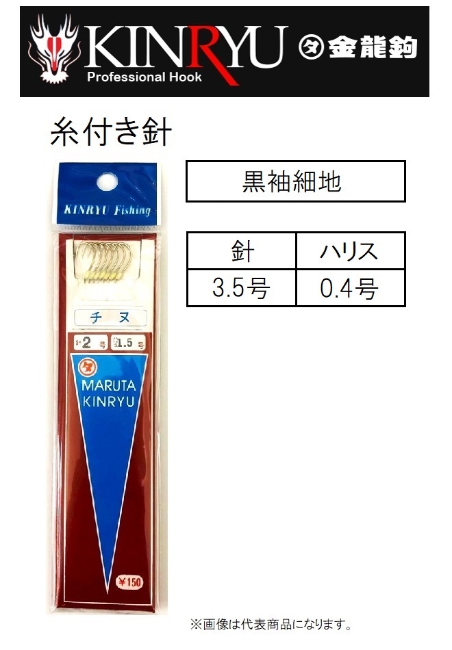 金龍鉤/ 糸付針 黒袖細地針 3.5-0.4号 糸付き針 黒袖細地 袖鉤 袖針 (メール便対応)