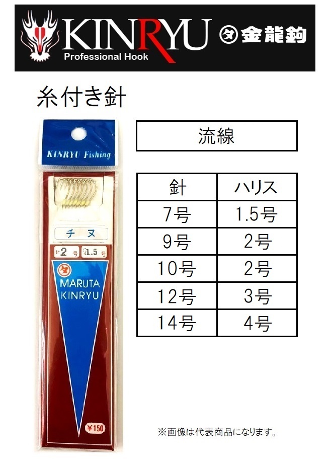 金龍鉤/ 糸付針 流線針 7 , 9 , 10 , 12 , 14号 糸付き針 流線 袖鉤 袖針 (メール便対応)