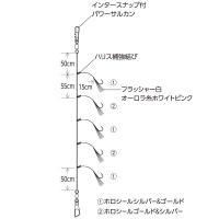 鈎はイサキ鈎の掛かりの良さは保持しつつ、線径を太軸化し更に強度を持たせた「強靭イサキ」を採用。胴打加工によるフラッシングでベイトの食性を刺激します。しなやかに誘う白フラッシャーはベイトがイワシの場合に高い効果を発揮!