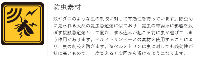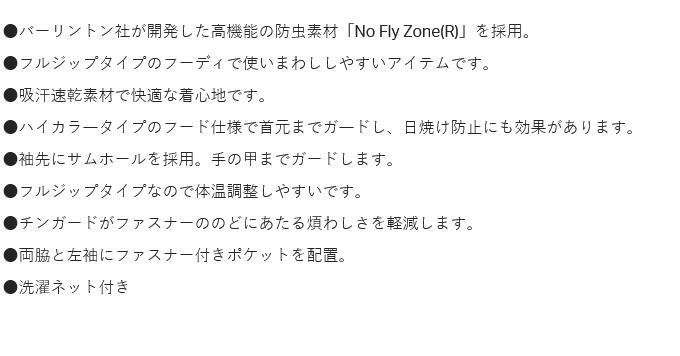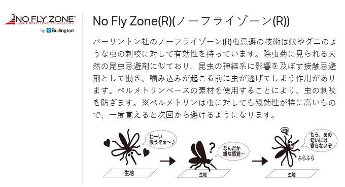 ●バーリントン社が開発した高機能の防虫素材「No Fly Zone(R)」を採用。