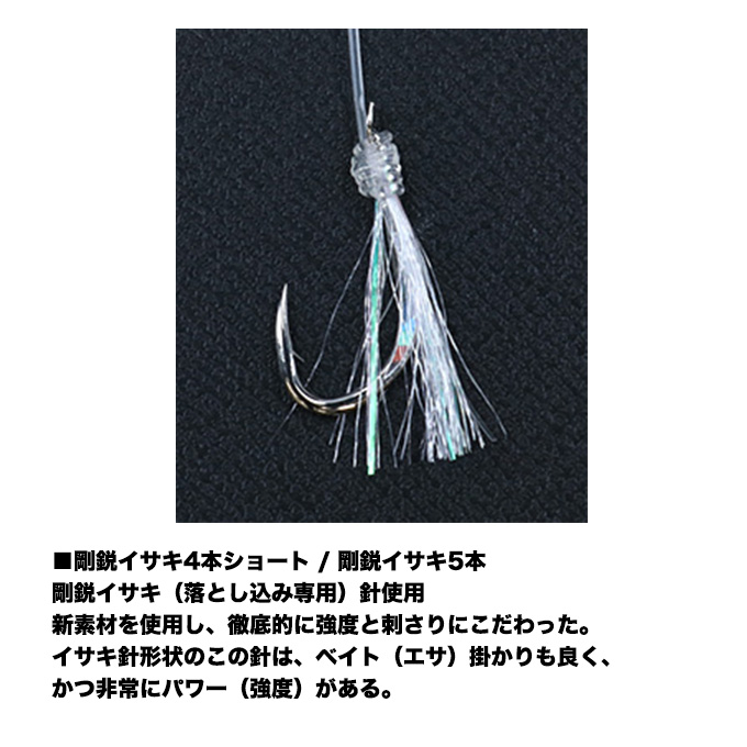 新素材を使用し、徹底的に強度と刺さりにこだわった。イサキ針形状のこの針は、ベイト(エサ)掛かりも良く、かつ非常にパワー(強度)がある。