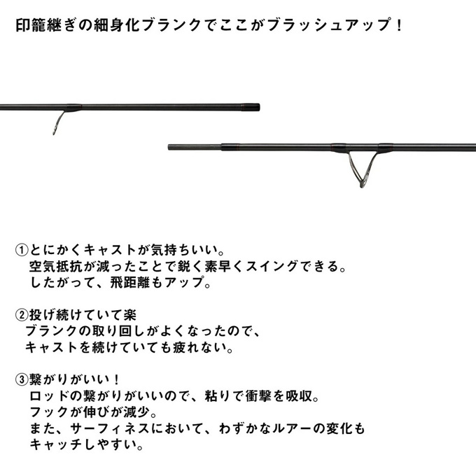 鋭敏な感度を持つMLパワーの繊細なティップと、遠投性に長けたMパワーの強いバットを組み合わせたサーフ用のベイトロッド。ミノーやシンキングペンシルはもちろん、繊細なジグヘッドリグの状況も鮮明に把握。食い渋るフラットフィッシュへ的確なアプローチを実現する。