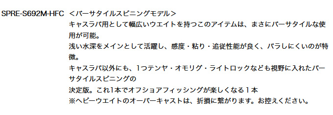 キャスラバ以外にも、1つテンヤ・オモリグ・ライトロックなども視野に入れたバーサタイルスピニングの決定版。
