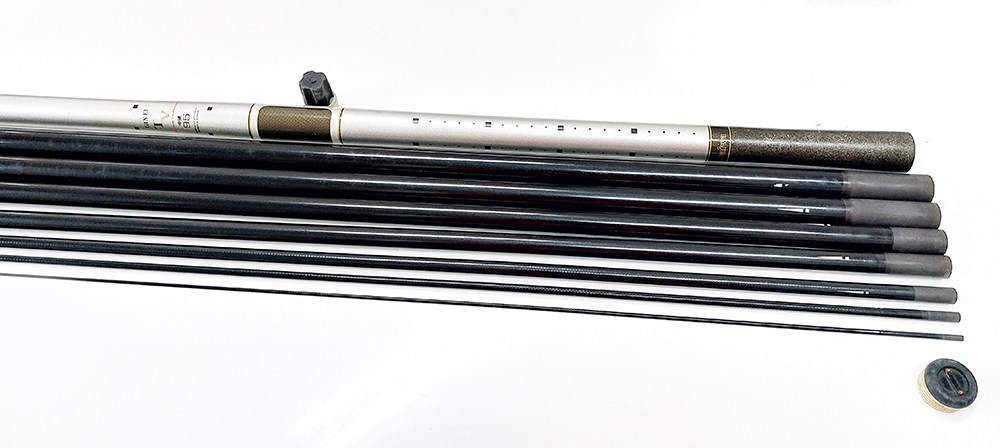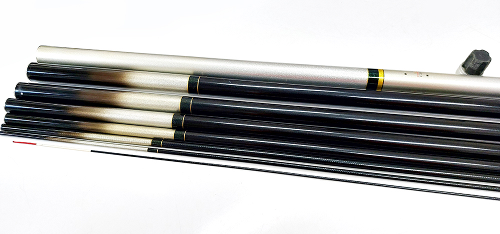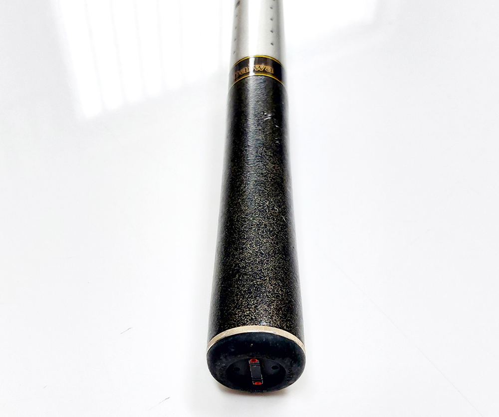 ダイワの鮎竿です。全体的に年式相応の小傷があります。元竿最下部のグリップ部分に目立つキズがあります。上栓はゴムのやせがあり緩めです。