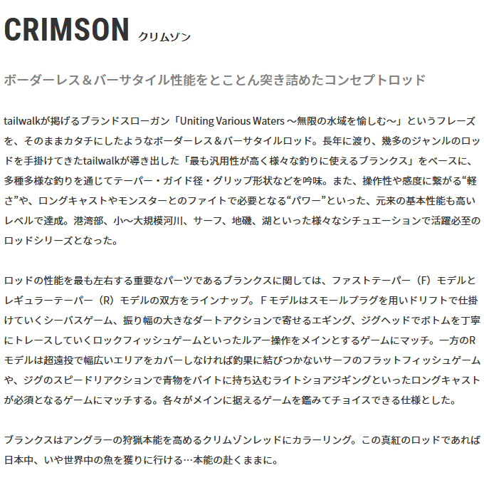 釣竿、ロッド、釣り、フィッシング、テイルウォーク、CRIMSON、tail walk、2022年モデル