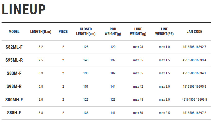 負荷に応じてしなやかに曲がっていくレギュラーテーパーブランクスと9フィート5インチという長めのレングスの相乗効果で、はるか遠くのスポットまでルアーを届けることのできるロングキャストモデル。中〜大規模河川や河口といったエリアで広く探っていくシーバスゲーム、20g前後のジグを大遠投してスピーディーに仕掛けていくライトショアジギング、スイミングワームでボトム付近をトレースしつつバイトを拾っていくフラットフィッシュゲームなど、MAX 35gまでのルアーを使用した様々なゲームに高次元で対応する。