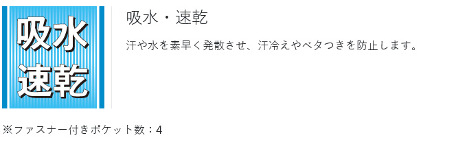 ●ジャケット 、パンツともにファスナー付きポケットを配置。