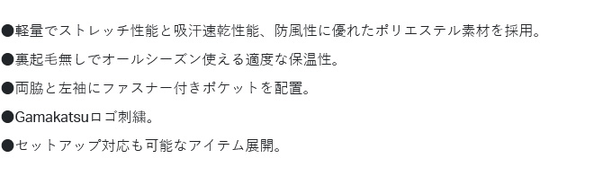 ●軽量でストレッチ性能と吸汗速乾性能、防風性に優れたポリエステル素材を採用。