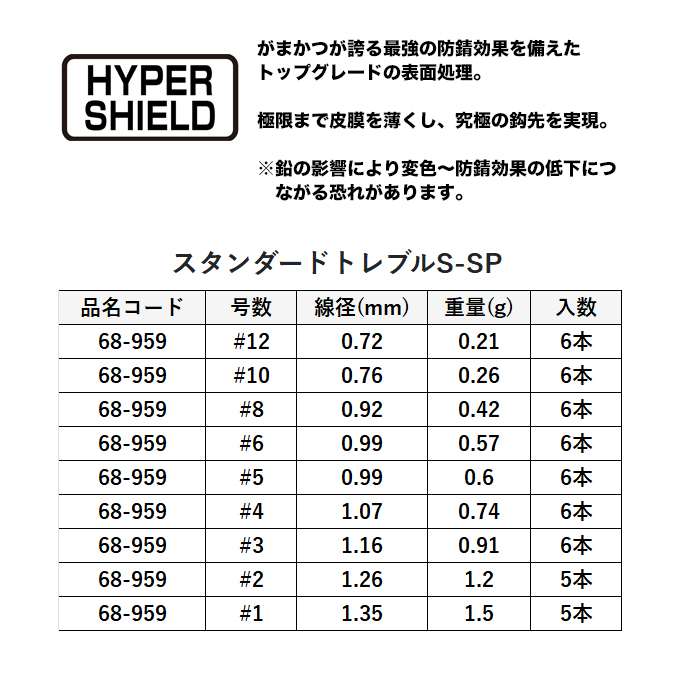 (5)がまかつ スタンダードトレブル S-SP MH #12 (品名コード:68-959) トレブルフック/ルアーフック 【Σ01】