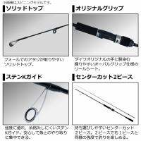 エントリーモデルながら操作性の良い軽量ブランクに、食い込みの良いソリッドトップを備えているためエントリーモデルながら、中級者でも十分満足出来る本格仕様。2ピース設計なので持ち運びやすいのもお手軽派アングラーには大きなアドバンテージとなる。