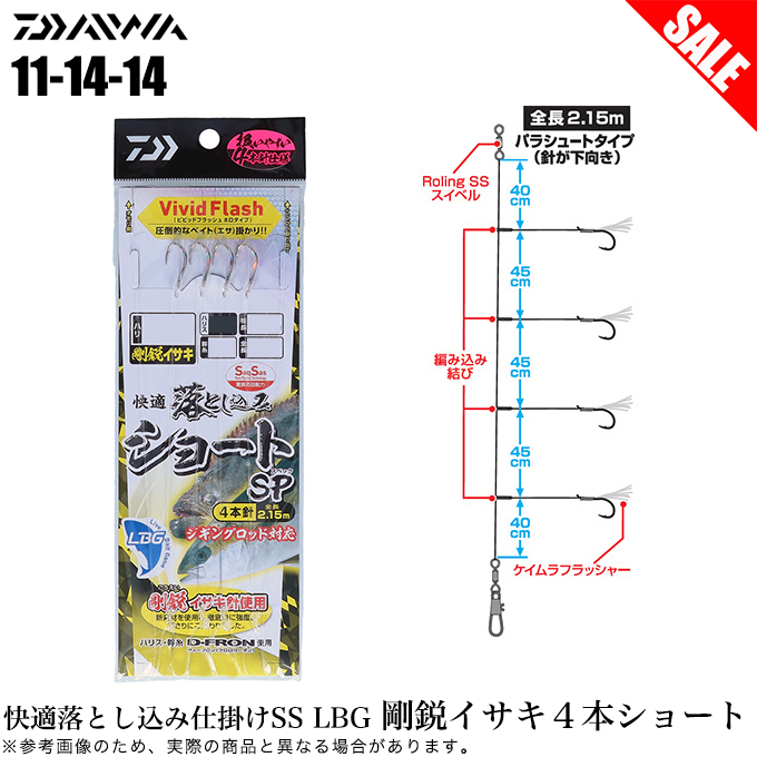 【目玉商品】ダイワ 快適落とし込み仕掛けSS LBG 剛鋭イサキ4本ショート 11-14-14 (船釣り仕掛け) /(5) 【Σ01】