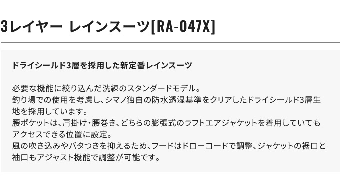 RA047X、セットアップ、上下セット、レインウェア、ウェア、ウエア、釣り、フィッシング、SHIMANO、1s6a1l7e-wear